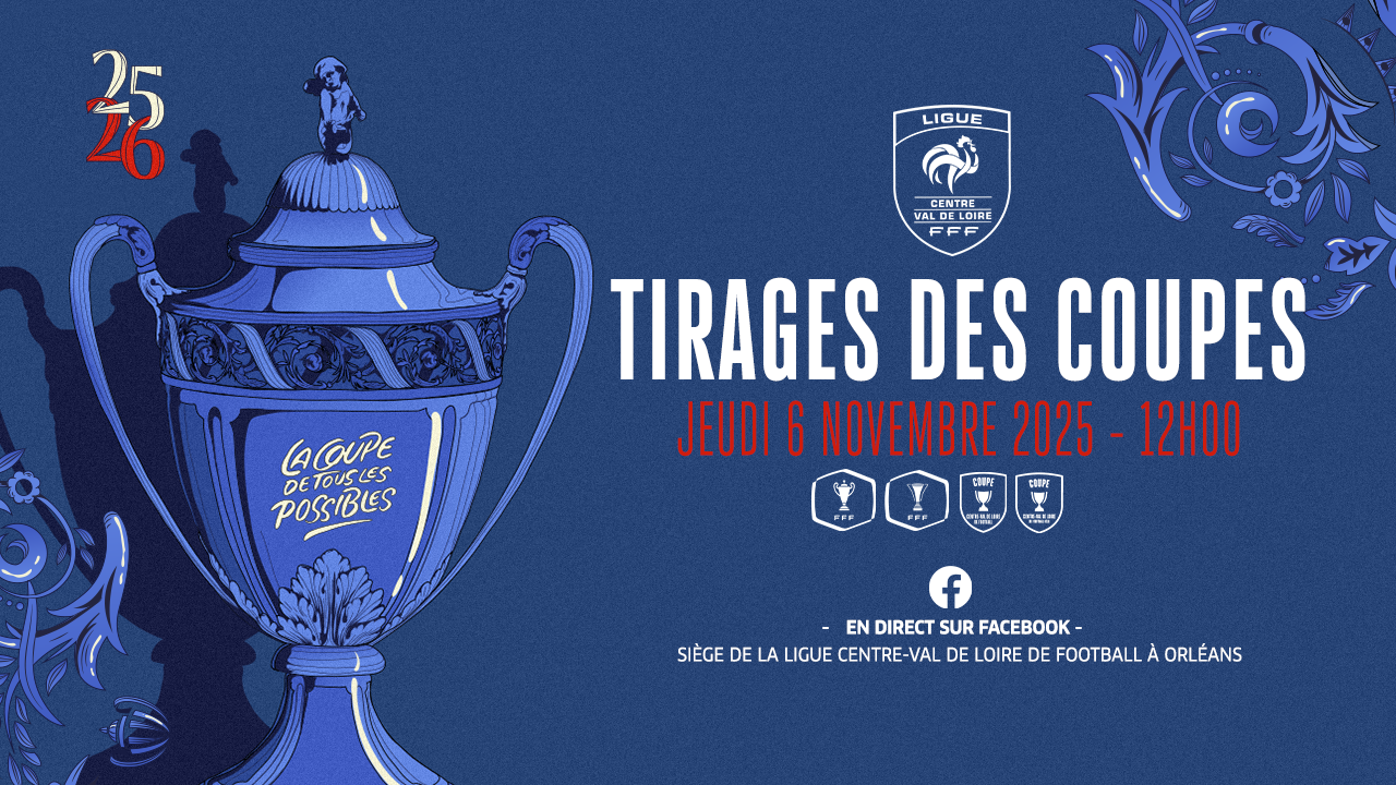 Suivez les tirages des Coupes Nationales et Régionales sur notre page Facebook le jeudi 6 novembre 2025 à 12h. Découvrez les tirages qui seront réalisés lors de ce live...