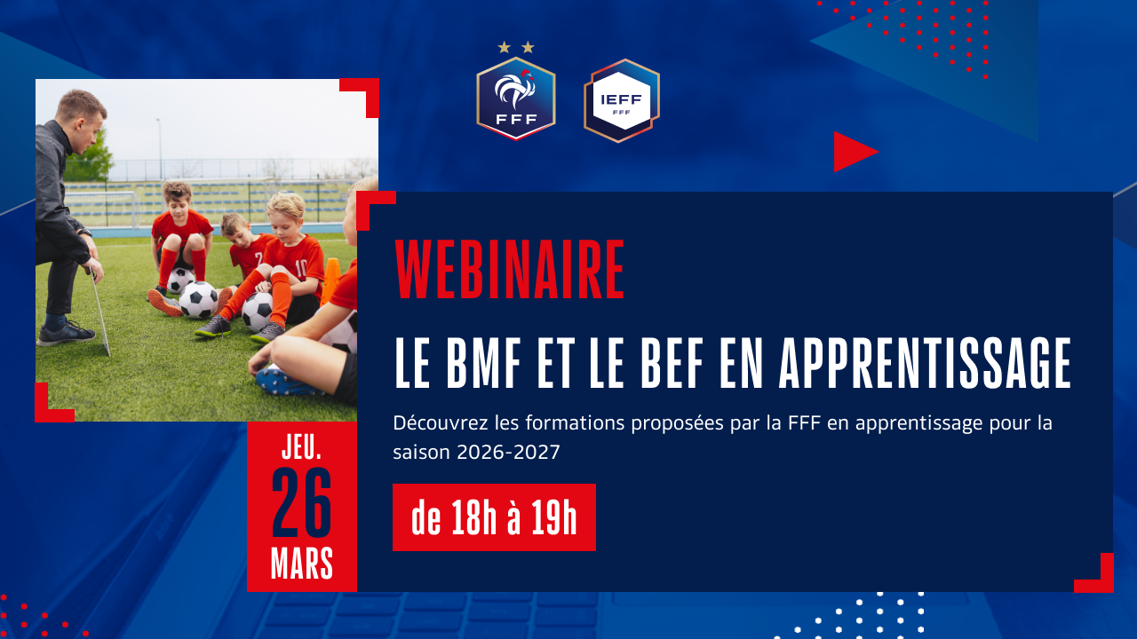 La Fédération Française de Football vous propose de participer à un webinaire sur les formations de BMF et BEF en apprentissage le jeudi 26 mars 2026 de 18h à 19h....