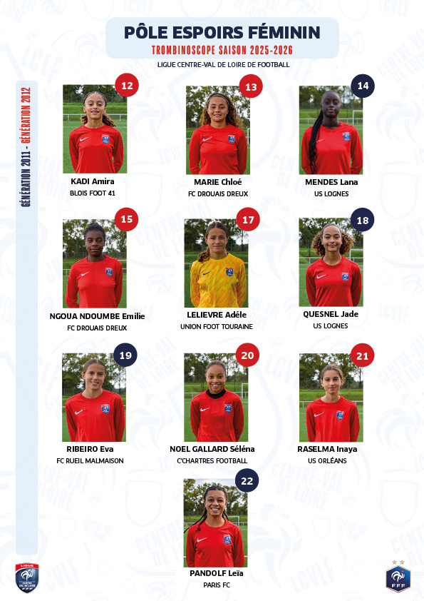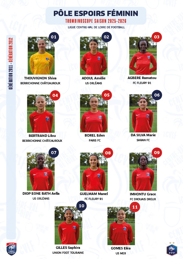 Les joueuses du Pôle Espoirs Féminin 2025/2026