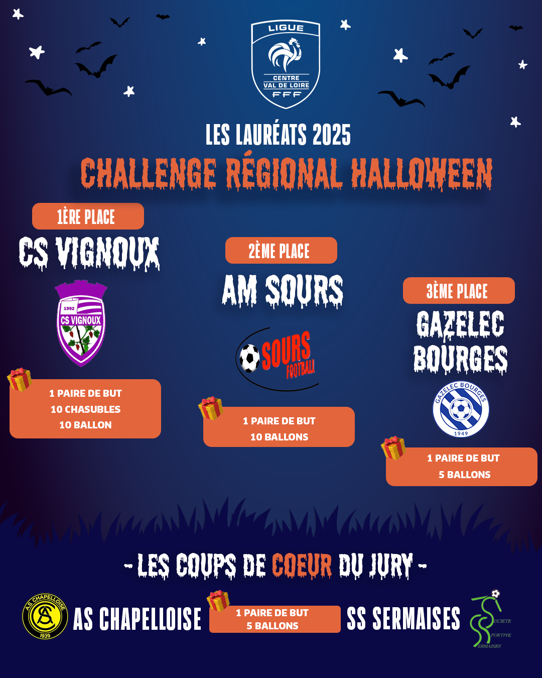 La Ligue a également souhaité récompenser les clubs lauréats départementaux par une dotation matérielle, en reconnaissance de leur participation et de leurs actions dans le cadre du challenge Halloween. *