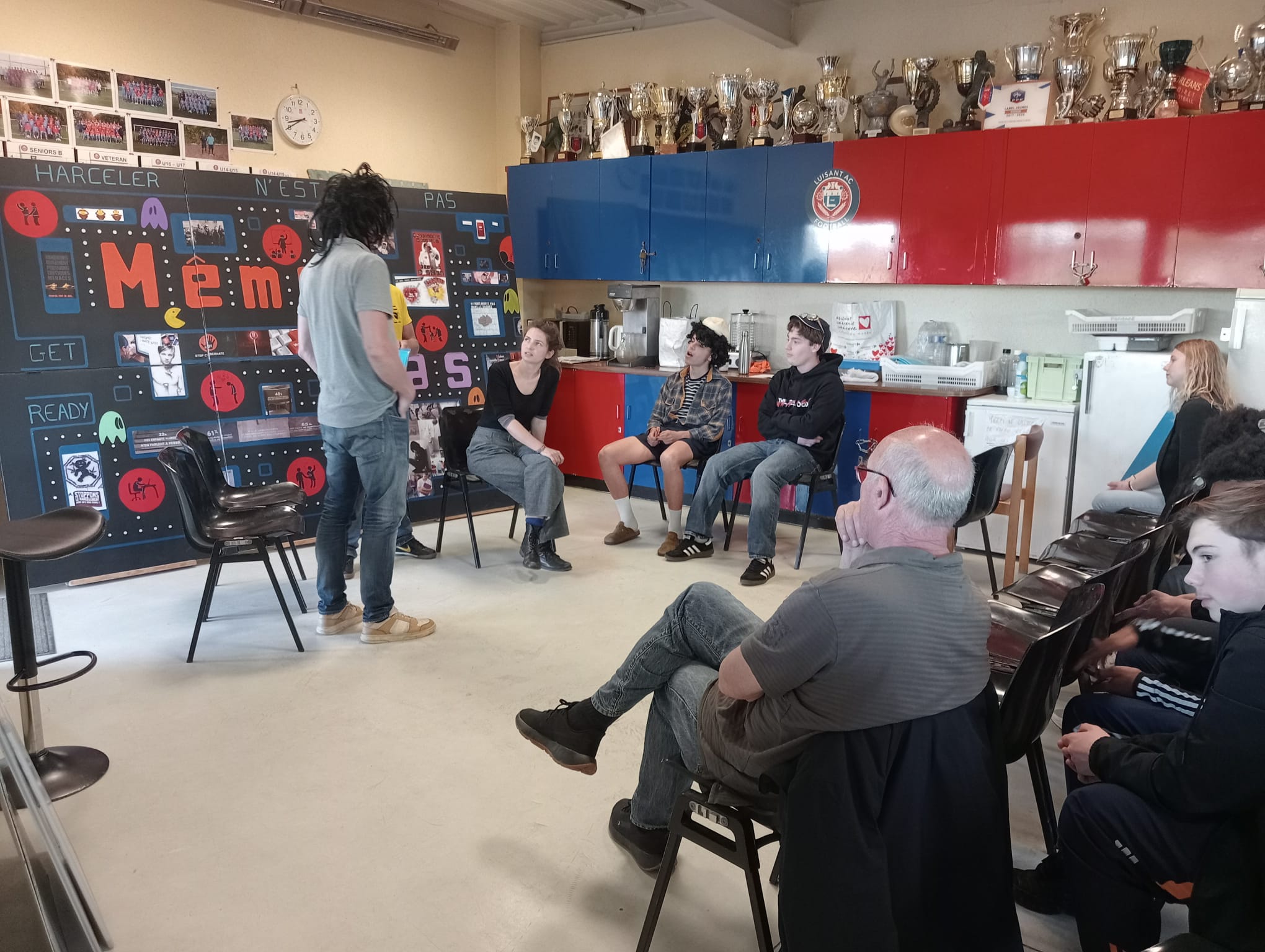 Les U17 et U15 du Luisant AC, 55 licencié(e)s de Dammarie Foot Bois Gueslin, les U11/U12 de l’EGC Touvent mais également des dirigeants, bénévoles et parents ont eu l’opportunité de participer à une intervention de l’association Trimaran autour de sujets concrets : harcèlement, cyberharcèlement, discriminations et usage du téléphone.