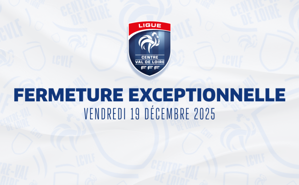 Les services de la Ligue Centre-Val de Loire de Football seront exceptionnellement fermés le vendredi 19 décembre 2025.