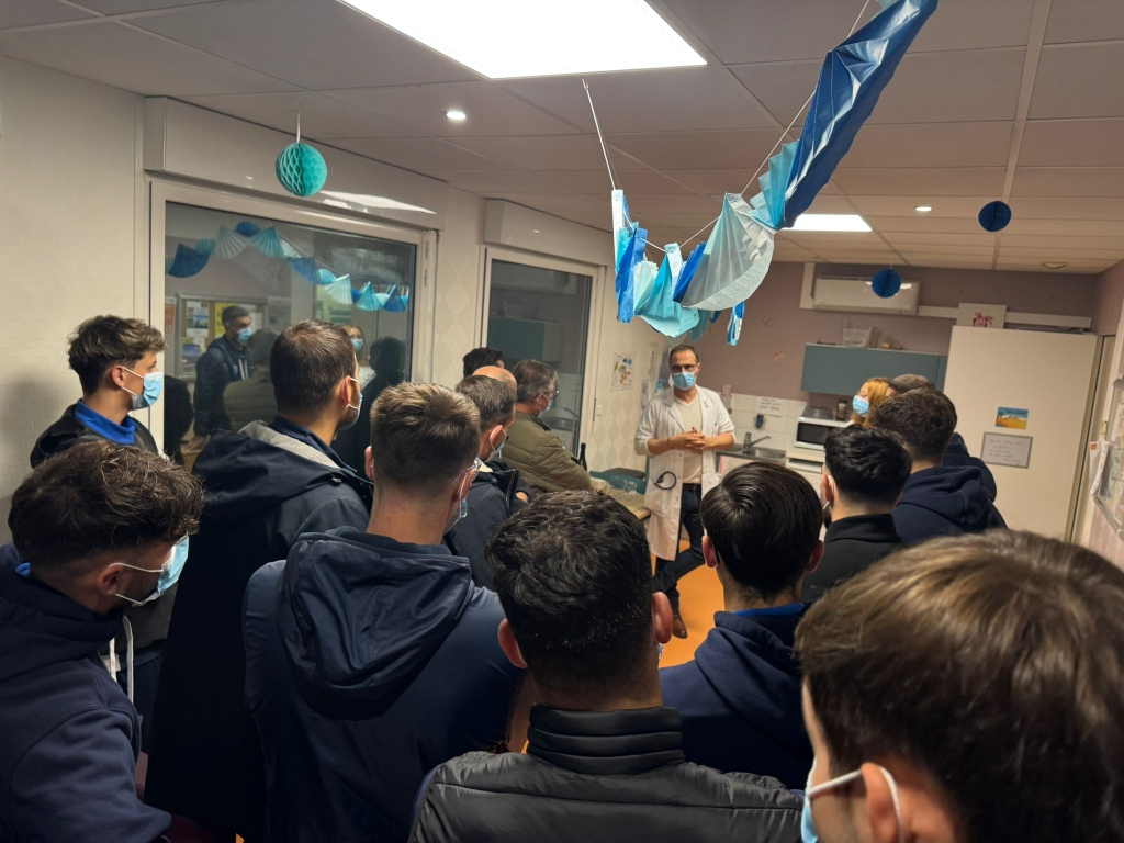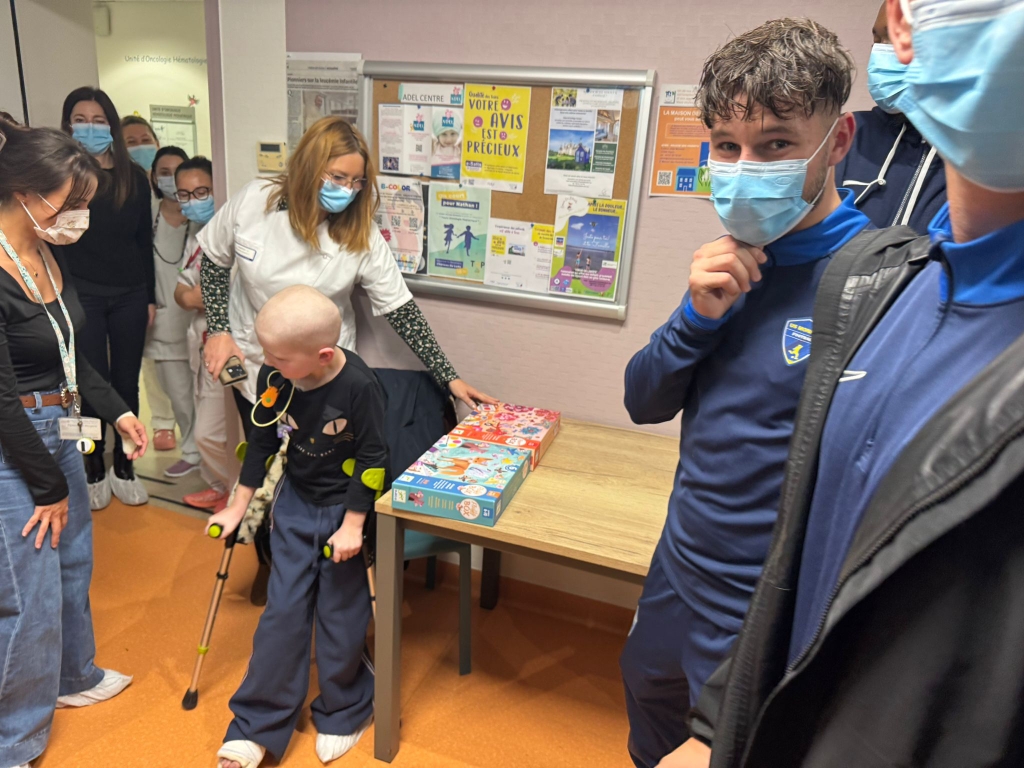 Deux jours plus tard, le lundi 10 novembre, les joueurs se sont rendus à l’hôpital de Clocheville afin de rencontrer les enfants du service. Chacun d’eux était parrain d’un enfant et lui a remis un cadeau personnalisé, préparé avec attention.