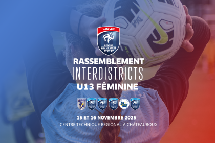 Le rassemblement Interdistricts U13F aura lieu les 15 et 16 novembre 2025 au Centre Technique Régional de Châteauroux.
