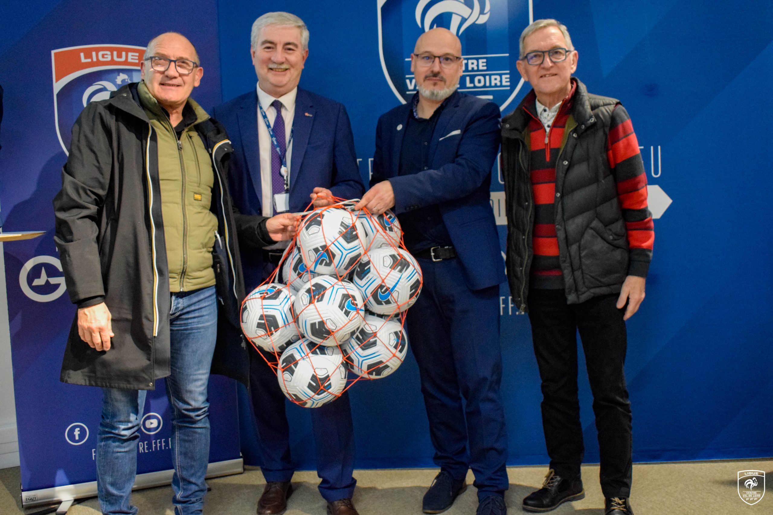 Mickaël Ferreira et Claude Tissier ont remis aux clubs lauréats présents du Challenge Régional Halloween, des dotations matérielles.