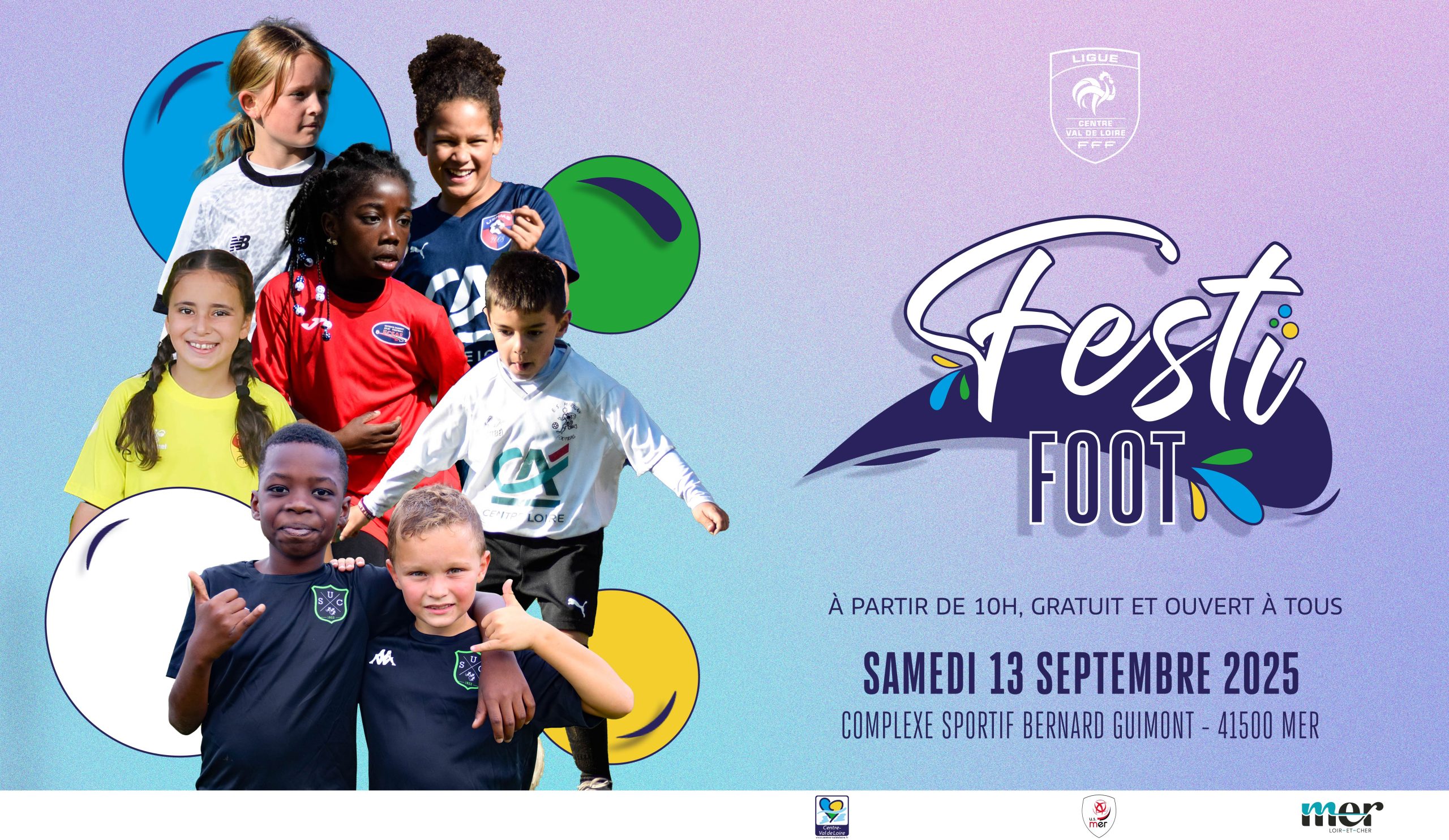 Festifoot revient de nouveau pour cette saison 2025/2026 le samedi 13 septembre 2025 en Loir-et-Cher cette fois-ci. Les équipes U9, U11, U11F et U13F inscrites se retrouveront à Mer (41)...
